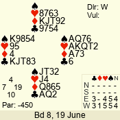 | Con | Dc | Res | Score | Ld | Pairs | Rd | Tbl | | 3 N | N | +1 | 430 | 3 | 08 - 05 | 4 | 8 |