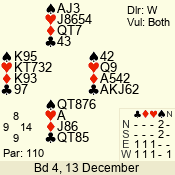 | Con | Dc | Res | Score | Ld | Pairs | Rd | Tbl | | 3 N x | N | +1 | 950 | Q | 02 - 04 | 3 | 2 |