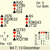 | Con | Dc | Res | Score | Ld | Pairs | Rd | Tbl | | 3 N | W | -3 | 300 | A | 03 - 02 | 2 | 3 |