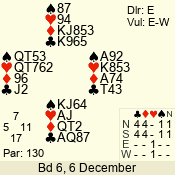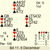 | Con | Dc | Res | Score | Ld | Pairs | Rd | Tbl | | 1 N | S | +1 | 120 | 7 | 06 - 05 | 2 | 6 |