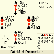 | Con | Dc | Res | Score | Ld | Pairs | Rd | Tbl | | 3 N | S | +1 | 630 | K | 06 - 07 | 7 | 6 |
