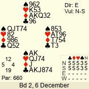 | Con | Dc | Res | Score | Ld | Pairs | Rd | Tbl | | 3 N | S | +3 | 690 | Q | 06 - 04 | 3 | 6 |