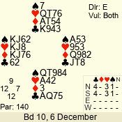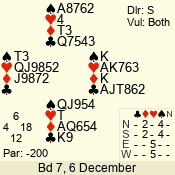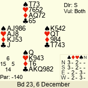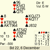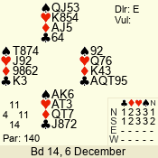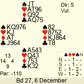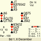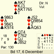 | Con | Dc | Res | Score | Ld | Pairs | Rd | Tbl | | 1 N | S | +1 | 120 | 7 | 06 - 05 | 2 | 6 |