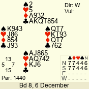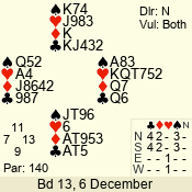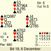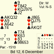 | Con | Dc | Res | Score | Ld | Pairs | Rd | Tbl | | 3 N | S | +1 | 630 | K | 06 - 07 | 7 | 6 |