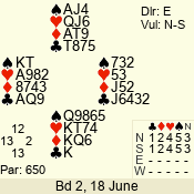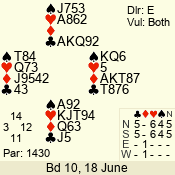 | Con | Dc | Res | Score | Ld | Pairs | Rd | Tbl | | 2 N | S | +2 | 180 | 2 | 07 - 07 | 1 | 7 |