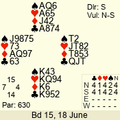 | Con | Dc | Res | Score | Ld | Pairs | Rd | Tbl | | 3 N | S | +1 | 430 | 6 | 07 - 02 | 6 | 7 |