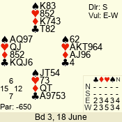 | Con | Dc | Res | Score | Ld | Pairs | Rd | Tbl | 4  | S | +1 | 650 | A | 02 - 03 | 7 | 2 |