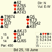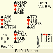 | Con | Dc | Res | Score | Ld | Pairs | Rd | Tbl | | 3 N | S | +1 | 430 | 6 | 07 - 02 | 6 | 7 |