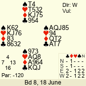 | Con | Dc | Res | Score | Ld | Pairs | Rd | Tbl | | 3 N | W | -4 | 200 | 3 | 03 - 04 | 7 | 3 |