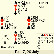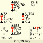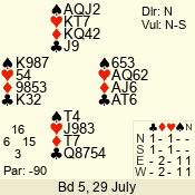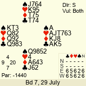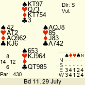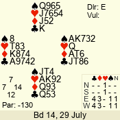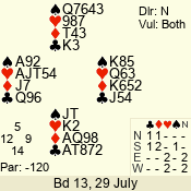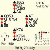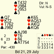 | Con | Dc | Res | Score | Ld | Pairs | Rd | Tbl | | 3 N | S | +1 | 430 | A | 04 - 09 | 12 | 4 |