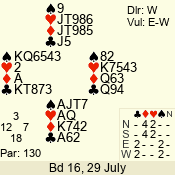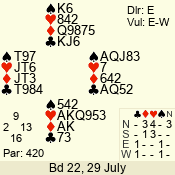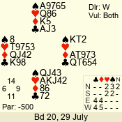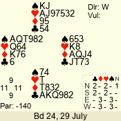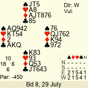 | Con | Dc | Res | Score | Ld | Pairs | Rd | Tbl | | 3 N | W | -4 | 200 | K | 02 - 06 | 13 | 2 |