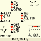 | Con | Dc | Res | Score | Ld | Pairs | Rd | Tbl | 3 x | E | -4 | 1100 | A | 06 - 12 | 11 | 6 |