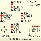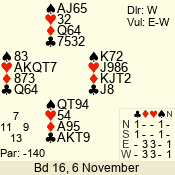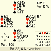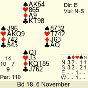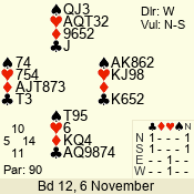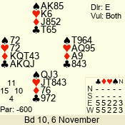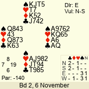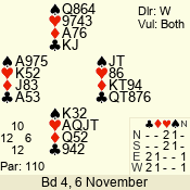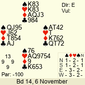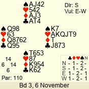 | Con | Dc | Res | Score | Ld | Pairs | Rd | Tbl | | 1 N | N | +2 | 150 | 2 | 11 - 06 | 1 | 3 |