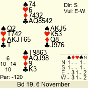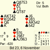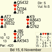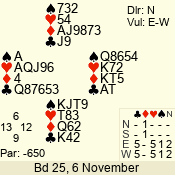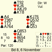 | Con | Dc | Res | Score | Ld | Pairs | Rd | Tbl | | 1 N | N | +1 | 120 | 2 | 12 - 04 | 6 | 1 |