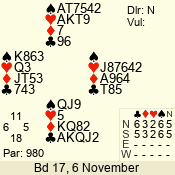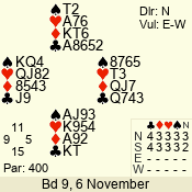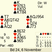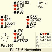 | Con | Dc | Res | Score | Ld | Pairs | Rd | Tbl | | 3 N | S | +2 | 460 | K | 11 - 05 | 9 | 3 |