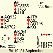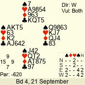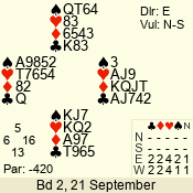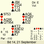 | Con | Dc | Res | Score | Ld | Pairs | Rd | Tbl | 4  | E | -2 | 200 | A | 04 - 09 | 7 | 4 |