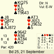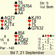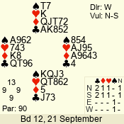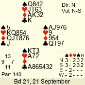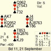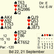 | Con | Dc | Res | Score | Ld | Pairs | Rd | Tbl | | 3 N | W | -3 | 300 | 3 | 05 - 05 | 12 | 5 |