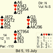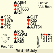 | Con | Dc | Res | Score | Ld | Pairs | Rd | Tbl | | 1 N | N | +1 | 120 | 3 | 05 - 05 | 1 | 5 |