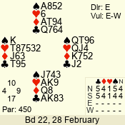 | Con | Dc | Res | Score | Ld | Pairs | Rd | Tbl | | 3 N | E | -1 | 50 | 2 | 02 - 03 | 7 | 3 |