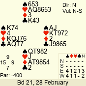 | Con | Dc | Res | Score | Ld | Pairs | Rd | Tbl | | 3 N | S | +4 | 720 | 6 | 09 - 03 | 5 | 1 |
