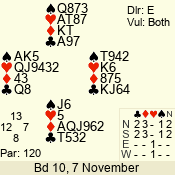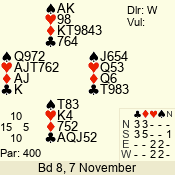 | Con | Dc | Res | Score | Ld | Pairs | Rd | Tbl | | 1 N | N | +2 | 150 | 5 | 03 - 05 | 10 | 3 |