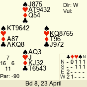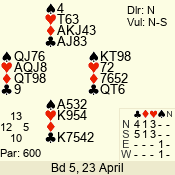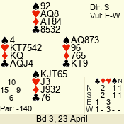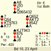 | Con | Dc | Res | Score | Ld | Pairs | Rd | Tbl | | 1 N | S | +3 | 180 | 6 | 10 - 06 | 5 | 10 |