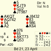 | Con | Dc | Res | Score | Ld | Pairs | Rd | Tbl | 4  | S | = | 420 | K | 03 - 06 | 8 | 3 |