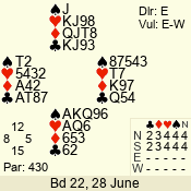 | Con | Dc | Res | Score | Ld | Pairs | Rd | Tbl | | 3 N | S | +1 | 430 | 7 | 01 - 02 | 6 | 1 |