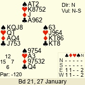 | Con | Dc | Res | Score | Ld | Pairs | Rd | Tbl | | 3 N | W | -4 | 400 | Q | 09 - 07 | 3 | 9 |