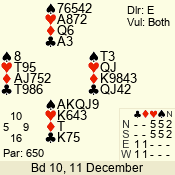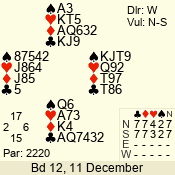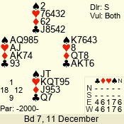 | Con | Dc | Res | Score | Ld | Pairs | Rd | Tbl | | 6 N | N | +1 | 1020 | 3 | 05 - 07 | 13 | 5 |