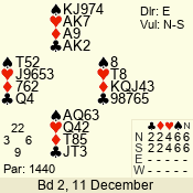 | Con | Dc | Res | Score | Ld | Pairs | Rd | Tbl | 4 x | W | -1 | 200 | 3 | 11 - 09 | 3 | 11 |
