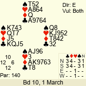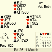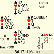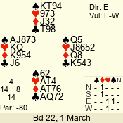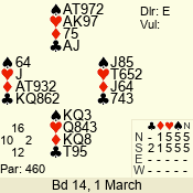 | 3 NT | E | +1 | -630 | A | 14 - 14 | 1 | 14 |
