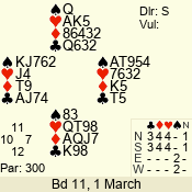 | 3 NT | S | +3 | 490 | T | 11 - 11 | 1 | 11 |