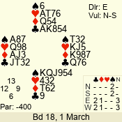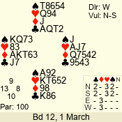 | 3 NT | S | +2 | 460 | 2 | 03 - 03 | 1 | 3 |