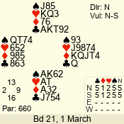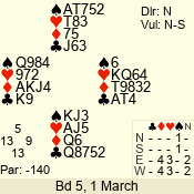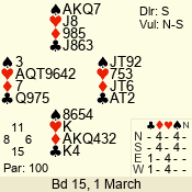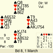 | 3 NT | S | +1 | 430 | 3 | 08 - 05 | 4 | 8 |