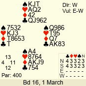 | 3 NT | W | +2 | -660 | 6 | 05 - 11 | 9 | 5 |