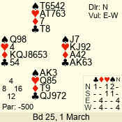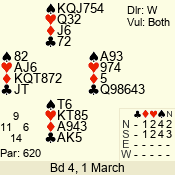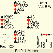 | 3 NT | W | +1 | -630 | T | 09 - 04 | 6 | 9 |