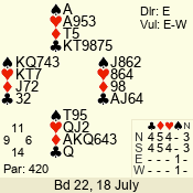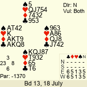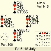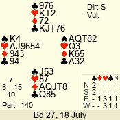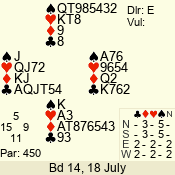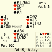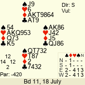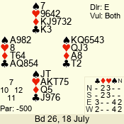 | Con | Dc | Res | Score | Ld | Pairs | Rd | Tbl | | 3 N | S | -1 | -50 | J | 02 - 01 | 2 | 2 |