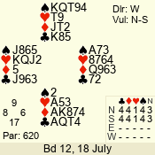 | Con | Dc | Res | Score | Ld | Pairs | Rd | Tbl | | 3 N | S | = | 600 | 2 | 07 - 01 | 7 | 7 |