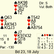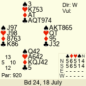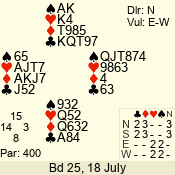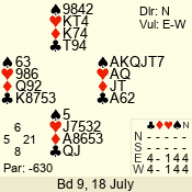 | Con | Dc | Res | Score | Ld | Pairs | Rd | Tbl | | 3 N | N | = | 400 | 6 | 05 - 09 | 6 | 5 |