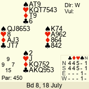 | Con | Dc | Res | Score | Ld | Pairs | Rd | Tbl | 4  | N | +1 | 450 | A | 01 - 03 | 8 | 1 |