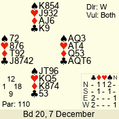 | Con | Dc | Res | Score | Ld | Pairs | Rd | Tbl | | 1 N | N | +2 | 150 | 3 | 02 - 03 | 4 | 2 |