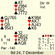 | Con | Dc | Res | Score | Ld | Pairs | Rd | Tbl | | 1 N | N | +3 | 180 | 7 | 03 - 03 | 1 | 3 |