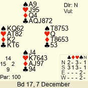 | Con | Dc | Res | Score | Ld | Pairs | Rd | Tbl | | 3 N | S | +3 | 490 | 7 | 02 - 02 | 1 | 2 |