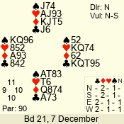 | Con | Dc | Res | Score | Ld | Pairs | Rd | Tbl | | 1 N | S | = | 90 | Q | 02 - 03 | 4 | 2 |