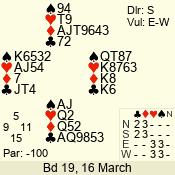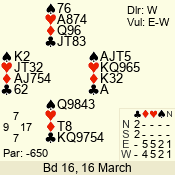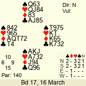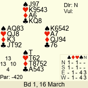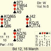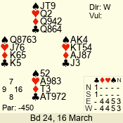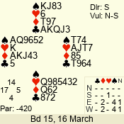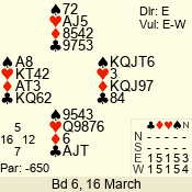 | Con | Dc | Res | Score | Ld | Pairs | Rd | Tbl | | 6 N | E | = | -1440 | 9 | 12 - 15 | 13 | 12 |