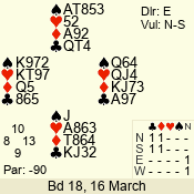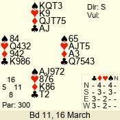 | Con | Dc | Res | Score | Ld | Pairs | Rd | Tbl | 4  | E | -3 | 300 | 9 | 11 - 09 | 3 | 11 |