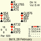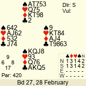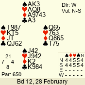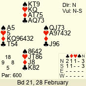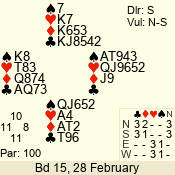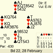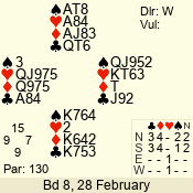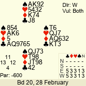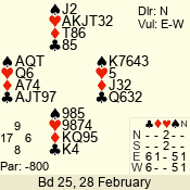 | 3 NT | W | +1 | -630 | 8 | 04 - 06 | 6 | 4 |