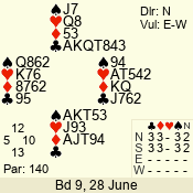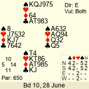 | 3 NT | S | +1 | 630 | 7 | 13 - 02 | 10 | 2 |