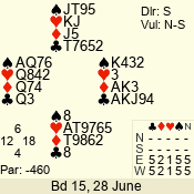 | 3 NT | S | +2 | 460 | T | 12 - 04 | 11 | 4 |